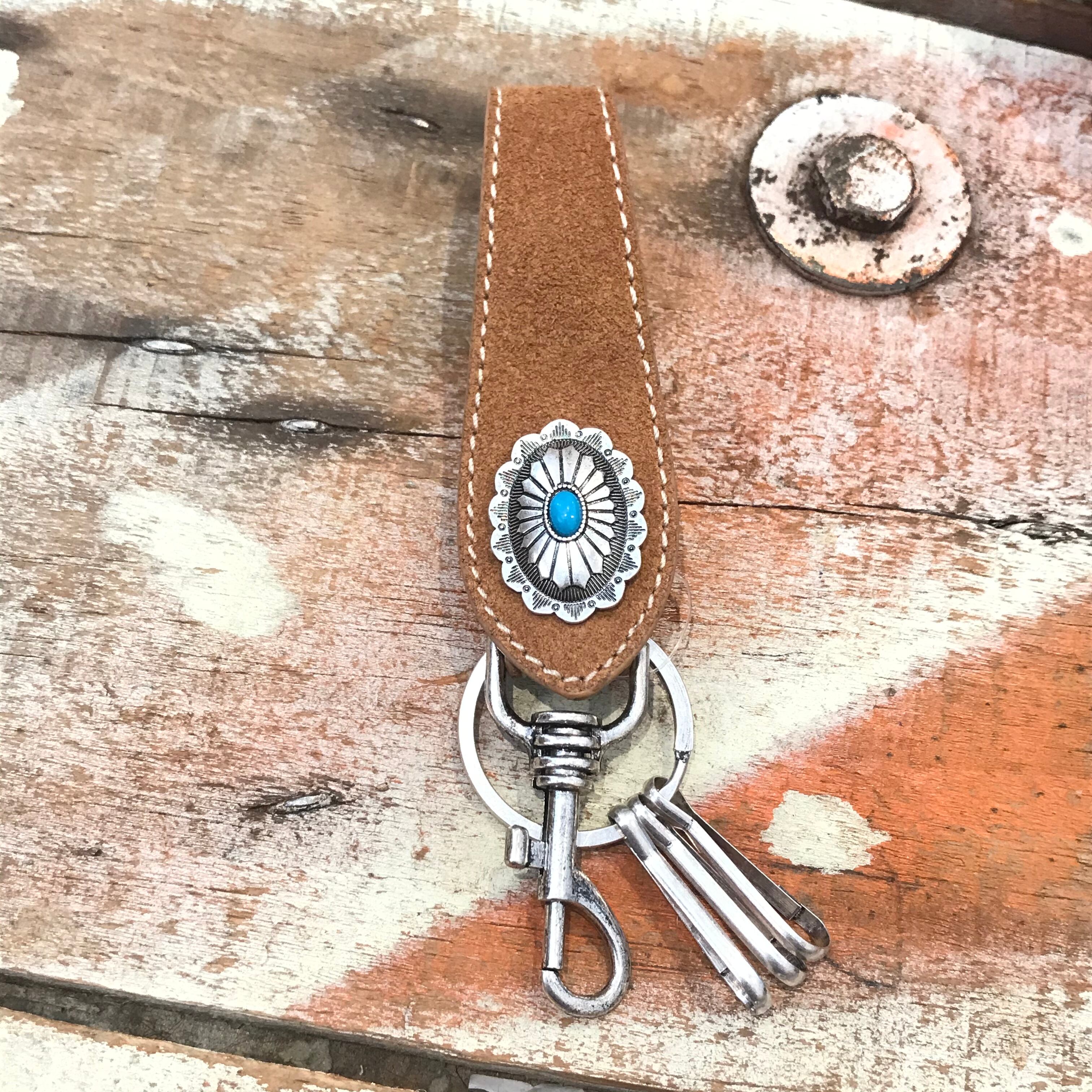 Native American コンチョ スウェード キーホルダー 〈キャメル〉