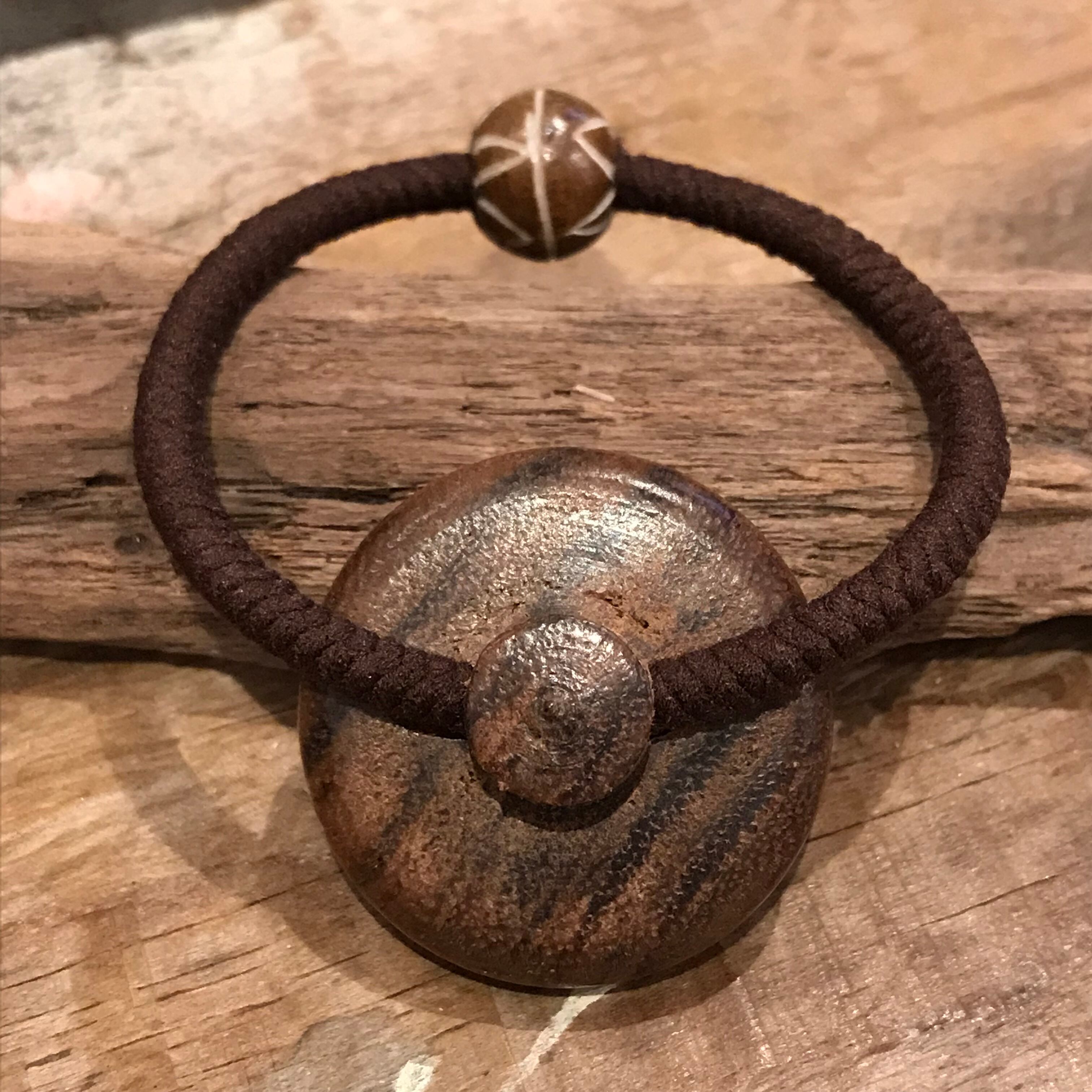 牛の骨で作られた天然石パウダーデザインのヘアゴムです。